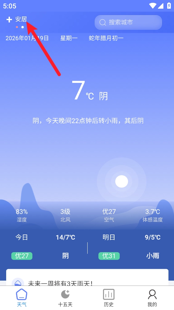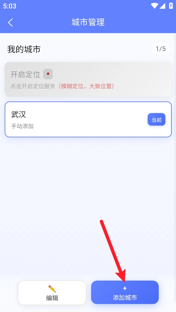 6、如图,成功添加后就可以查看该城市的天气详情。