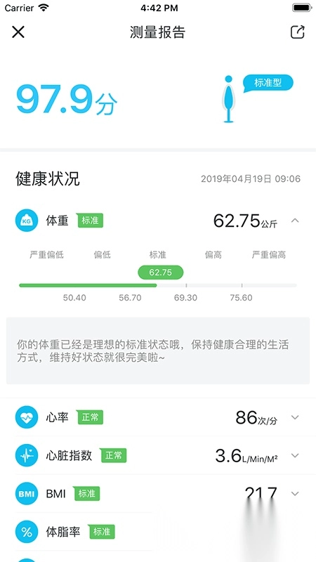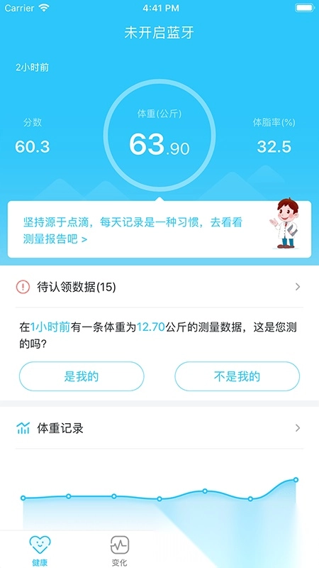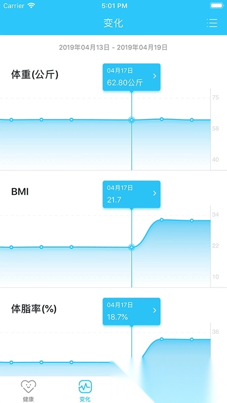 以周、月为单位生成趋势图表,清晰反映身体变化;