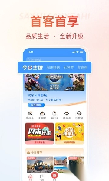 首客首享是一款聚焦高品质城市生活服务的手机应用,支持多城市线上提前预约,覆盖酒店住宿、票务购买以及精选购物等各类场景,力求为用户带来便捷且优质的服务体验,堪称日常出行的实用帮手。