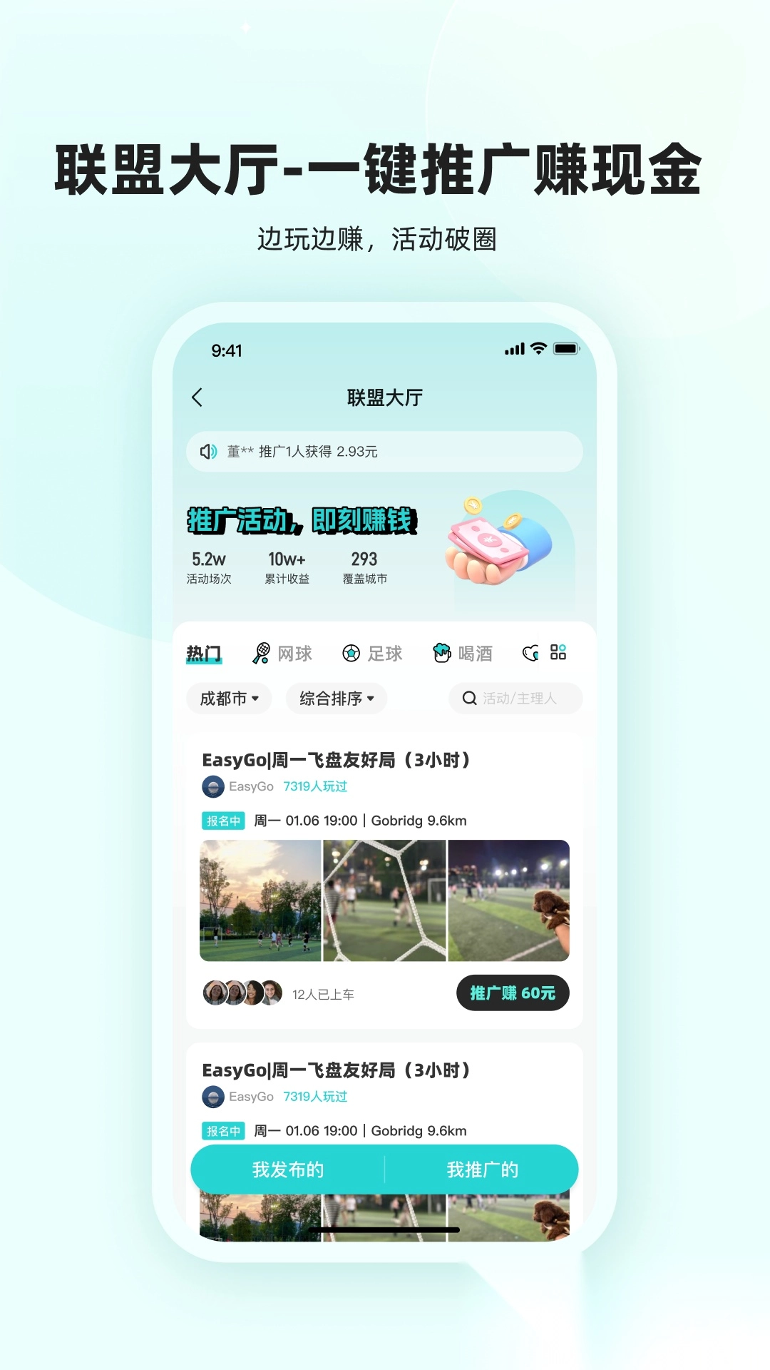 5. 活动推广收益:于联盟大厅内推广优质活动,能够获取对应的佣金奖励;