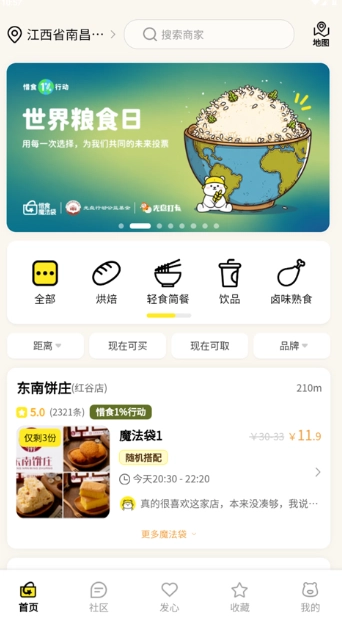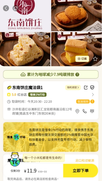 余量食物的预订与购买服务:用户能够通过线上平台下单,购买商家当天尚未售罄的余量食物“魔法袋”,以较为优惠的价格获取品质完好的食品,从而助力减少食物浪费现象。