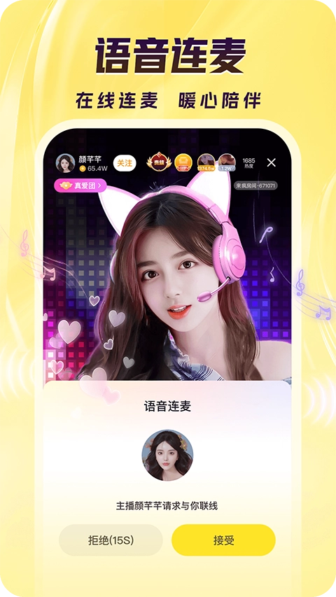 【多人连麦】加入多人PK,给主播打call助力,解锁丰富多样的互动体验。