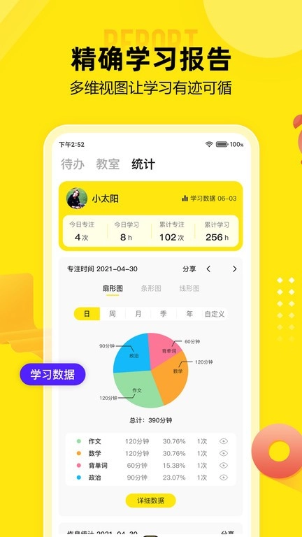 - 自动生成学习报告,直观对比各科目投入时间;