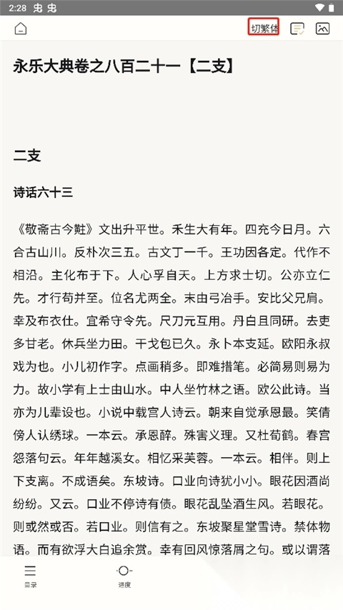 5. 阅读工具栏提供繁简转换、批注分享等功能;