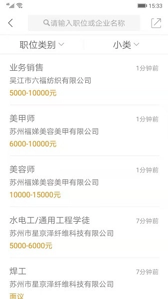 行业分类筛选,快速定位目标岗位;