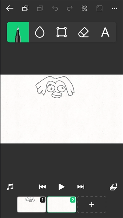 现在可以着手进行创作了。先在一块画布上绘制出你心仪的图案,随后点击下方按钮再生成一块画布,在新画布上描绘不同的图案,最后点击下方的播放按钮,就能呈现出动画效果了。