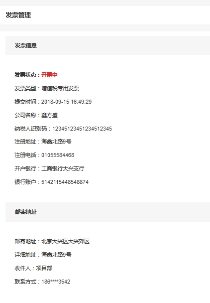 客户可选择开具增值税普通发票(适用于企业或个人)以及增值税专用发票。若选择开具增值税专用发票,其开票信息将采用签约账户入驻平台时所提供的信息;若有修改需求,请与平台客服取得联系。