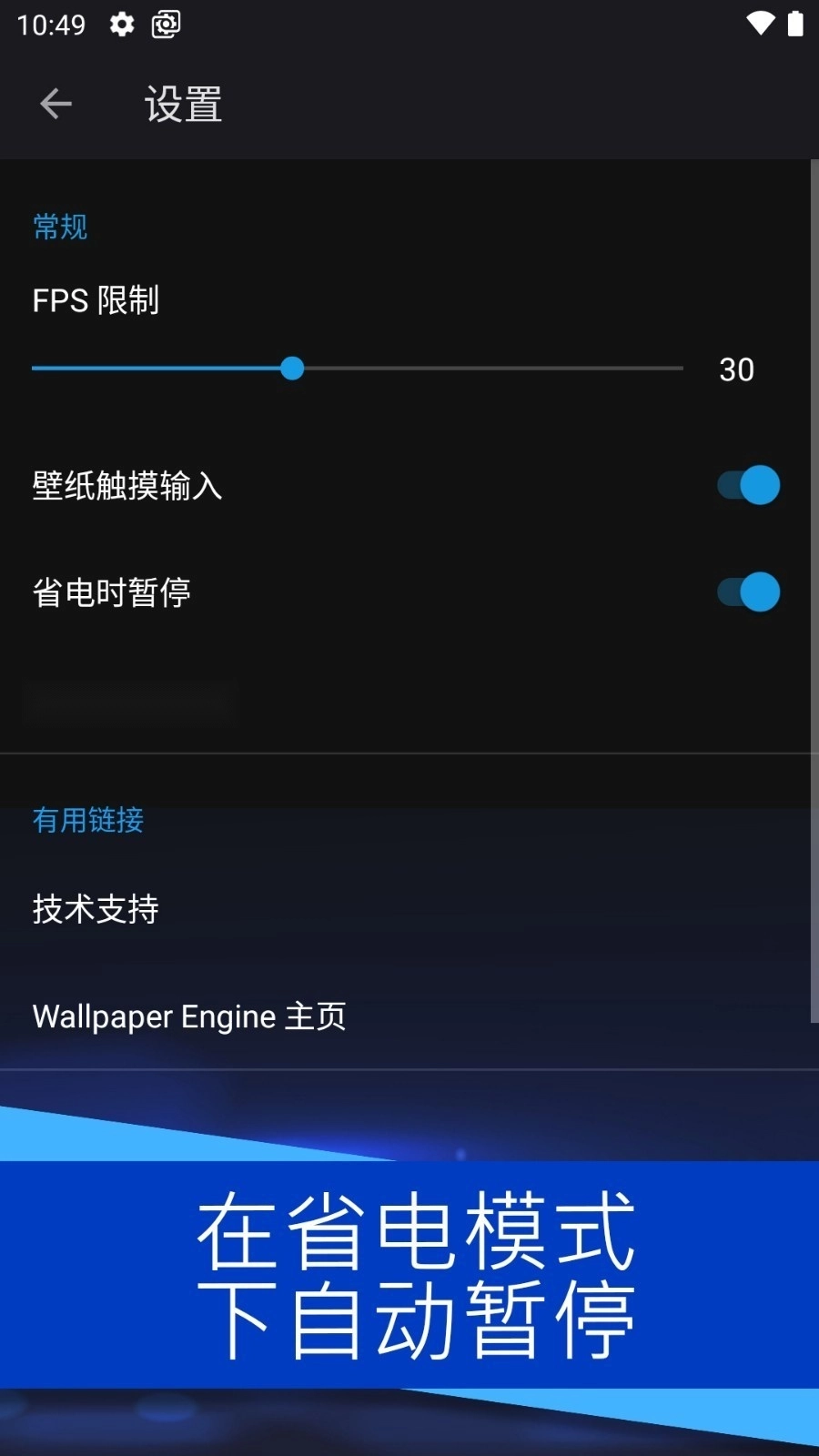 在手机上启用节能模式后,壁纸将自动暂停