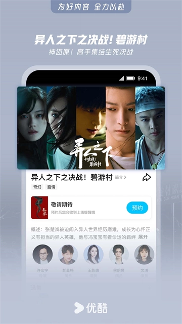 要完成投屏操作,第一步得确认电视和手机处于同一个无线网络环境下,接着启动优酷应用,从中挑选一部打算投射到电视上观看的剧集或影片。