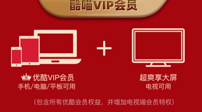 酷喵VIP:除涵盖优酷VIP的所有权益外,还可在电视端的CIBN酷喵影视、天猫魔盒以及天猫魔屏上使用。