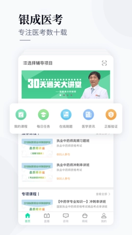 银成医考提供考研西医综合、执业医师、助理医师资格考试教辅资料和考前培训服务。无论您是准备考研还是准备执业医师或助理医师考试,都可以在银成医考中找到所需的学习资料和培训服务。无需担心找不到适合自己的学习材料,银成医考的大纲齐全,涵盖了医师考试培训领域的所有题库、视频。其中包括执业医师大纲、助理医师大纲、考研西医大纲、西药师大纲、中药师大纲和乡村全科大纲六大类。无论您是想复习历年真题,还是想进行章节练习,或者想进行考前押题,银成医考都能满足您的需求。