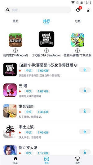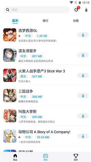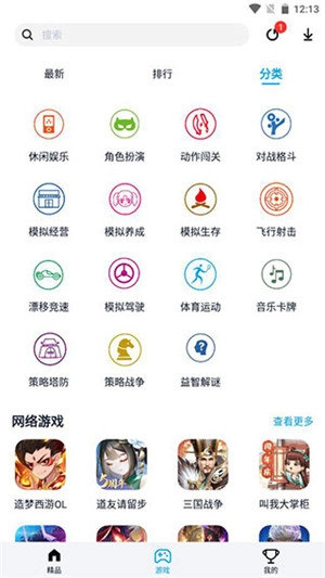3、也可以在游戏的分类中,查找自己想要的游戏资源