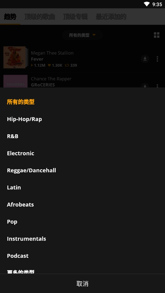 6、查找并以流式传输的方式获取新出或热门的音乐与混音带,让自己成为最先知晓潮流动态的人。