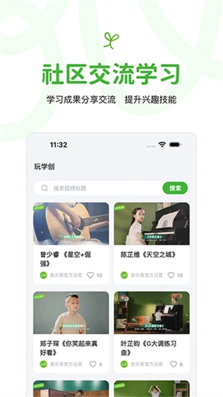 整合多品类课程资源与线上音乐活动,课程涵盖流行音乐常见品类,活动包含学员作品展演、音乐主题挑战,助力学员拓展音乐视野,巩固课堂所学。