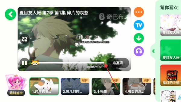 在动漫播放页面,点击小窗按钮就能放大观看《夏目友人帐》第一集的内容。
