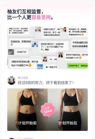 5、只需设置好目标体重,跟随小柚量身定制的计划进行美丽修行,让健康生活简单、高效,小柚便是您的专属减脂教练。