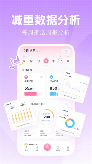 1、设置好目标体重,为你量身定制美丽修行。