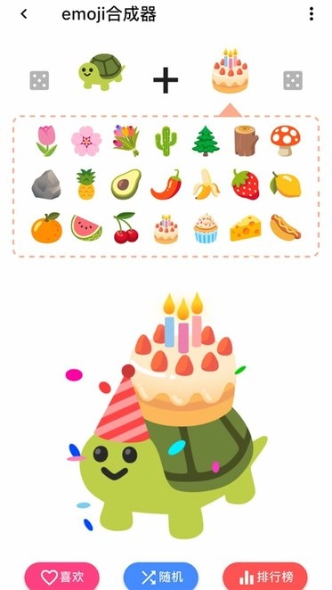emoji合成工具,富有创意的emojimix表情包合成器,可混搭表情贴纸,还支持随机组合功能。