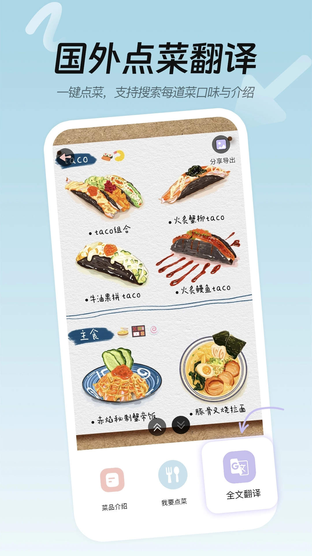 核心定位:专注于“场景化实用翻译”的工具,以“在实际场景中解决语言问题”为核心。与传统的纯文本翻译软件不同,它更注重将翻译结果转化为行动指南,涵盖餐厅点餐、购物、游览景点、文化体验等高频场景,成为海外旅游和跨语言生活的实用助手。