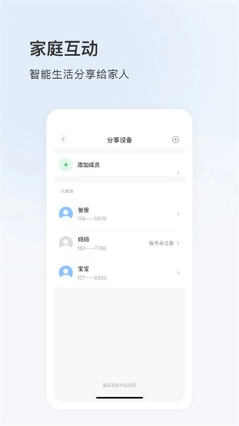 用户能够邀请家人加入家庭空间,和家人一同查看监控内容。