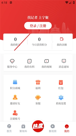 1、打开【宁聚】后,在首页点击底部导航栏的【我的】按钮,进入个人中心页面,以此完成账号登录前的准备步骤。