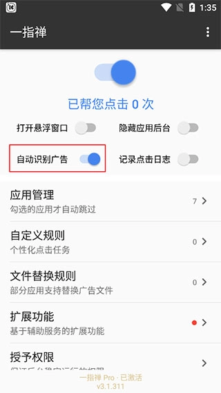 5、开启自动识别广告功能;