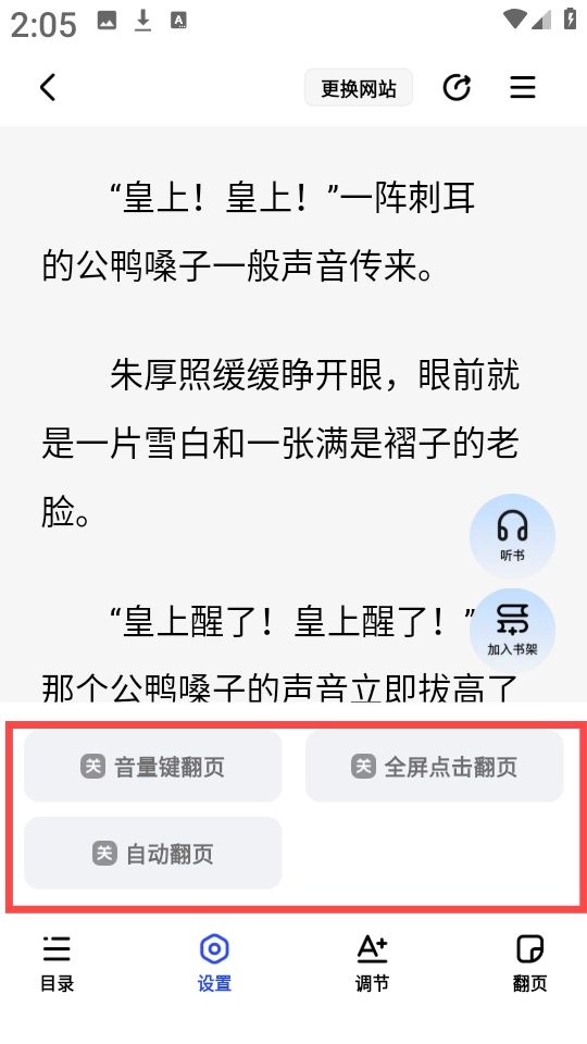 之后就能浏览你喜爱的小说了,还支持一键设置自动翻页功能。