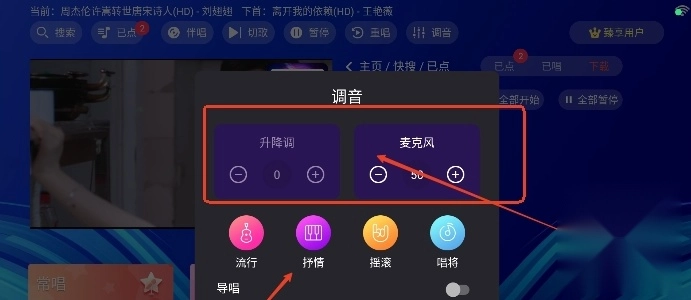 选择对应的模式,调整升降调的数值,以及麦克风音量的大小,等这些设置都完成后,返回上一级界面即可。