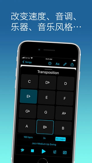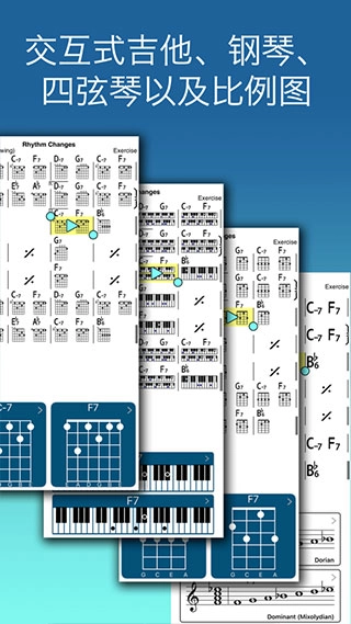 •在每首曲子中显示和弦提示音阶,以帮助即兴创作
