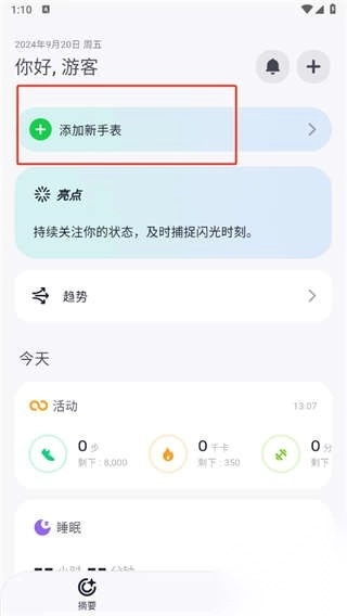 1、在fitbeing首页上,点击【添加新手标】。