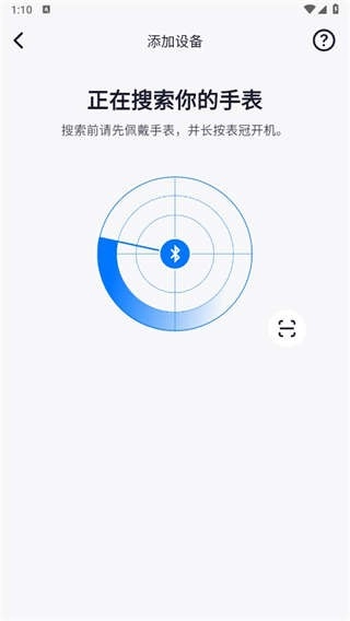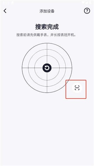 3、出现这个页面后,就意味着搜索完成了。我们也可以点击右下角的【扫描】按钮,来扫描手表的二维码。