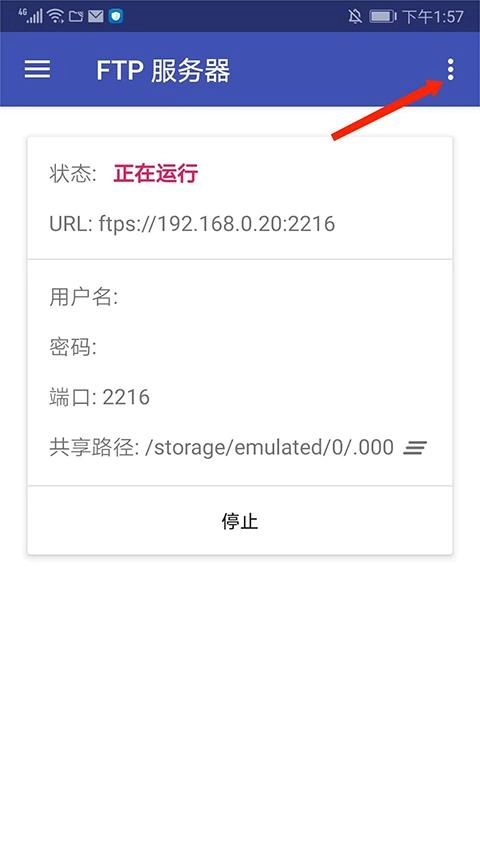 3、进入FTP服务器界面后,点击右上角的【三个点】图标。