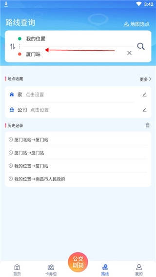 1. 打开厦门公交,点击上方的【公交路线】或下面的【路线】。