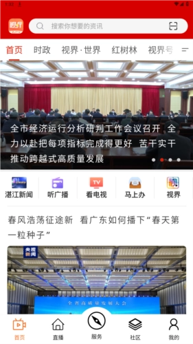 视听湛江是一款由湛江市广播电视台发行的专门为湛江地区的用户们准备的新闻阅读软件,该软件是提供了大量的服务,不仅在这里可以阅读新闻,还可以获得相关的政务服务,让用户在这里可以得到良好的服务。用户不仅在这里可以阅读到本地的新闻,政府的相关政策等等,同时也是可以阅读到国家相关的新闻,以及国家领导的方针政策等等。