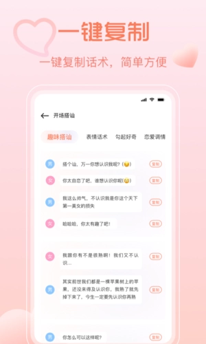 2、软件能够帮助用户学会聊天技巧,这里为你提供庞大的话术库。