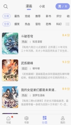 2、根据分类快速筛选,精准锁定用户喜欢的那本小说。