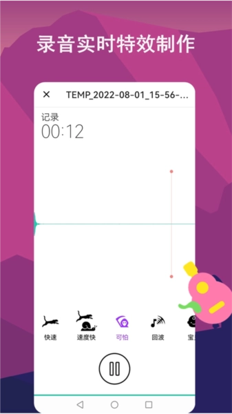 4、音频调速、特效录音制作、音频添加声效等功能:配备了多样的特效选项与录音功能。