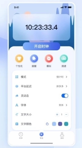 在《悬屏时钟》的应用场景中,您能体验到便捷的悬浮时钟服务,不管是工作还是学习,都能轻松掌握时间。它的抢购秒杀功能,帮您不错过任何优惠时刻,实时推送的购物助手,让您在竞争激烈的秒杀活动中抢占先机。专注模式可以助您隔绝干扰,专注于当下任务,提高效率。个性模式则允许您自由定制悬浮时钟,打造专属的桌面风格。