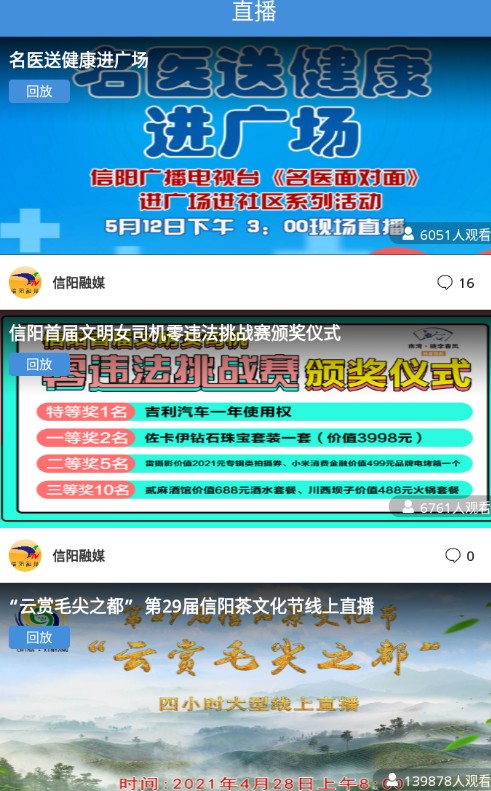 2、专为信阳制作的融媒体移动平台,平台拥有新闻,直播,视听,服务等等内容板块。