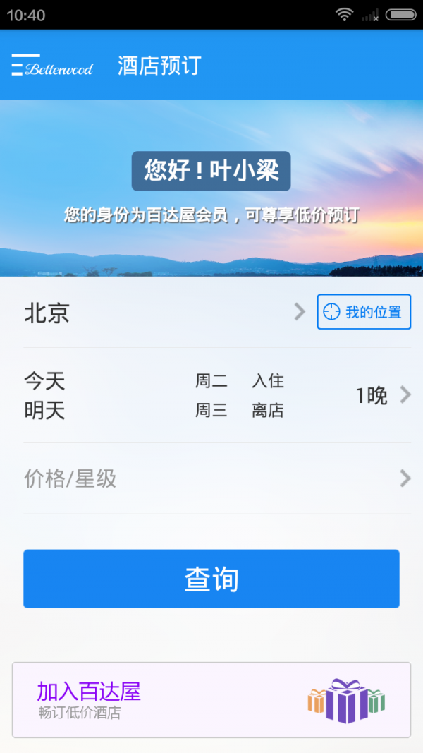 百达屋是一款基于移动终端的酒店预订平台,为您提供海量全网独家特价酒店,价格低到爆,限时销售,差旅出行必备。