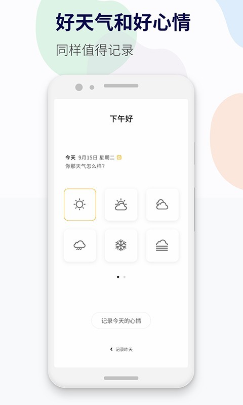 5、可以让你的心情和每天的天气情况进行同步,同时也让用户以记日记的形式进行轻松的减压。