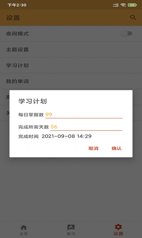 3、用户可以在这里制定自己的学习计划,每天要掌握多少单词。
