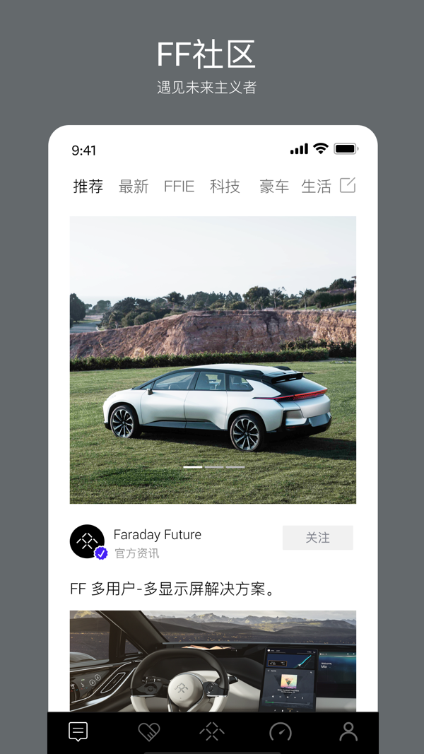 在这里,您不仅可以了解和预订您的FF 91,获取FF官方信息,还可以在FF社区与志同道合的朋友交流,您还可以参与FF产品的全生命周期,通过互动反馈,与FF共同成长,共同创造价值。