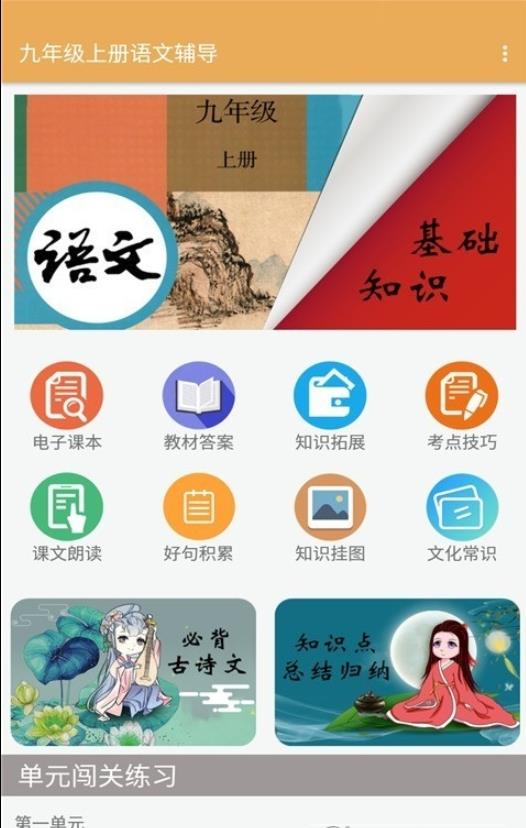 2、是一款专业的学习辅导软件,专为初三用户提供语文辅导教学服务,与书本教材同步,帮助小伙伴们轻松提高学习效率。