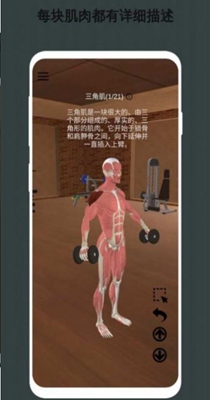 2、场景支持放大和缩小和旋转视图来更好的观看,更精确的学习健身、健美、减脂的动作。