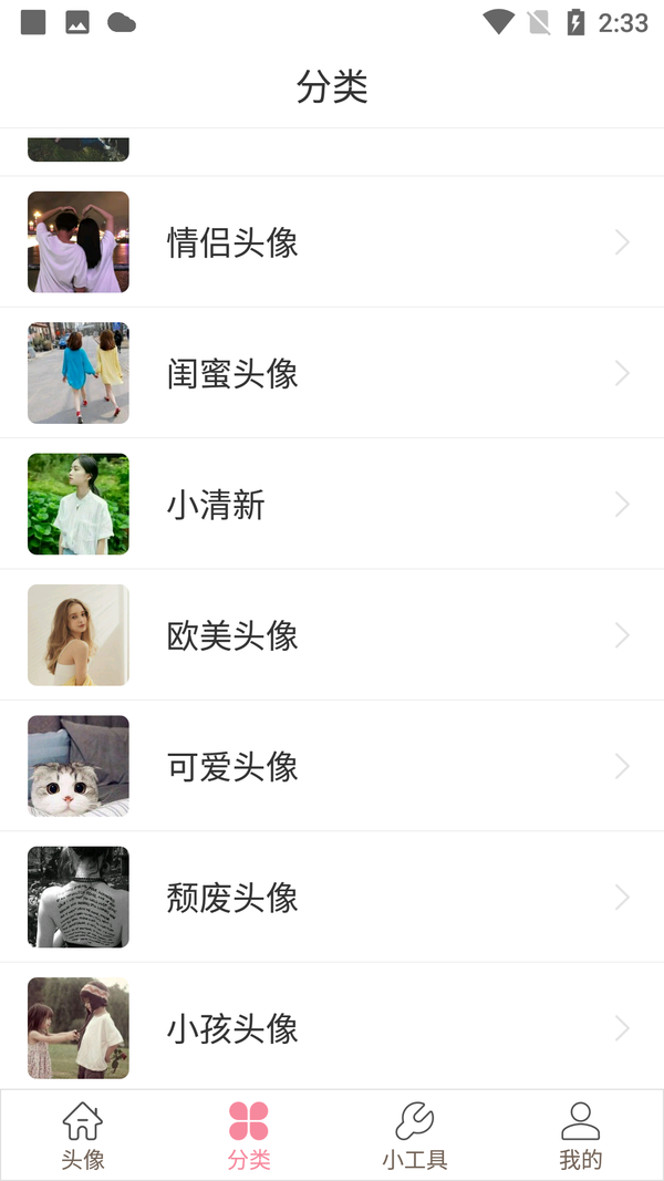 1、平台将所有的头像按照类型进行了划分,大家可以提供分类来查找。