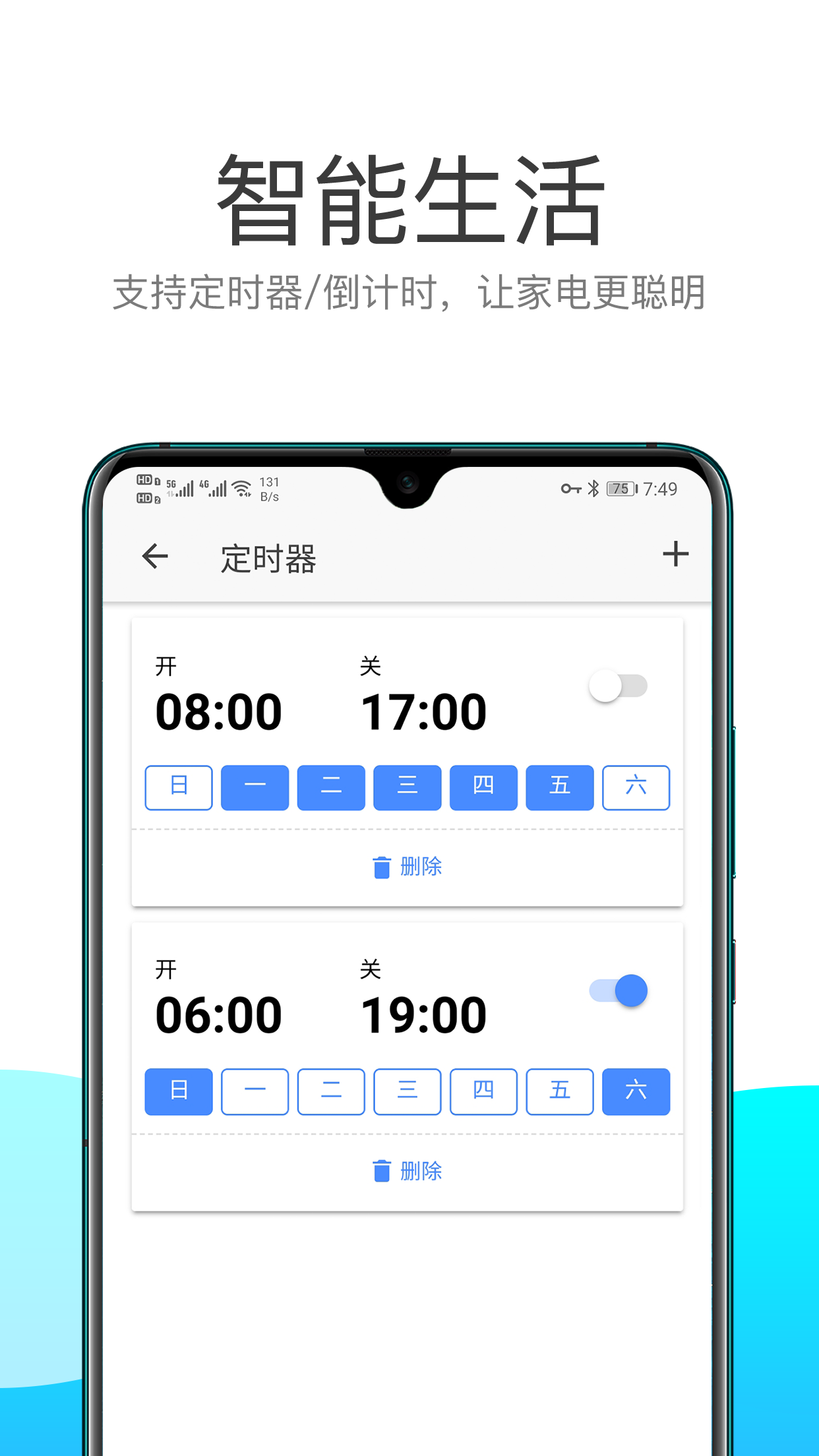 2、使用此专业应用程序,您可以随时随地控制智能插座,例如使用此应用程序中的计时器进行自动控制。