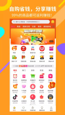 1.大部分商品都有返利,用户线上购物可以轻松省钱。