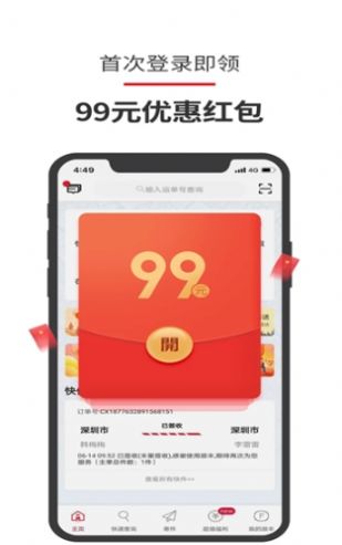 客户们首次登陆还能领取99元的寄件优惠红包。