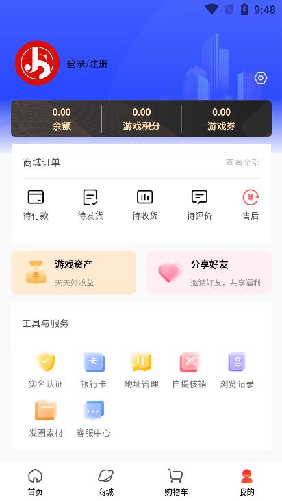 2、这里有首页、商城、购物出以及我的个人中心等多种功能,你可以去选择你感兴趣的内容。
